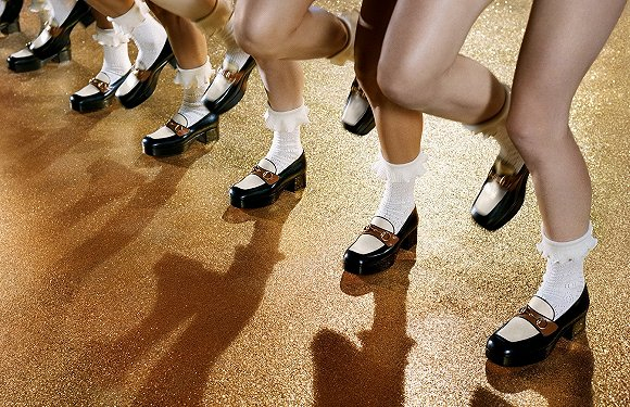 这能解释为什么2019春夏秀场上会出现,穿着丝绒廓形运动套装,背着花色双肩包,却手上还要提一个米老鼠头小包的复杂造型——他说他就是突然想到了应该放入一只这样的米老鼠;这也可以卓明这支广告片里,为何会有群舞演员竟然统一穿着品牌最新款的宝石户外登山凉鞋以及乐福鞋,却丝毫没有过时感和违和感的景象——那些产品本就是被改良的老旧款式产品,既有过去的影子,也有当代的审美元素。