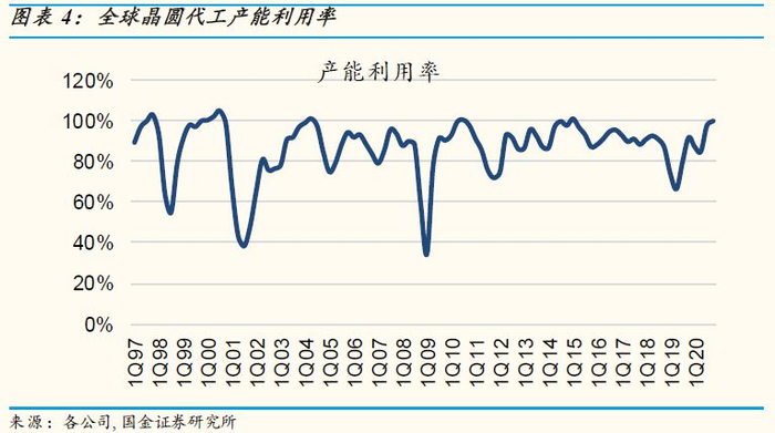 2、5G商用化之后,以智能手机为代表的各类电子产品需求不及预期,晶圆代工厂产能利用率恢复时间延长。