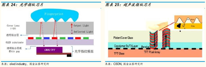光学屏下指纹即将爆发:2019年将是光学屏下指纹解锁全面爆发的一年。目前,手机的指纹解锁解决方案将从传统电容指纹方案转移到全面屏指纹方案。主要原因:1)消费者对纯全面屏的需求2)3D sensing解锁功能不成熟,性价比低。全面屏主流技术解决方案以光学和超声波为主。光学指纹解决方案是利用光的折射与反射,将手指放置在镜片上,手指在内置光的照射下从底部射向手指,射出的光线根据手机指纹纹理表现的光暗表现不同,通过反射到的耦合器件,来识别指纹所有独特的特征。光学指纹识别方案主要由AMOLED 屏(即光源)、CIS,算法芯片 以及镜头组成。由于传统LED屏幕背光板的存在导致手指反射后的光源没法穿透屏幕,故此目前光学指纹只能应用在OLED屏幕上。汇顶科技、Synaptics. 思立微,神盾,敦泰是主要供应商。而高通所主导的超声波指纹解决方案则是利用指纹模 组发出的特定频率的超声波扫描手指,由于超声波到达不同材质表面时被吸收、穿透和反射的程度不同,因而可以利用皮肤和空气对于声波阻抗的差异,对指纹的嵴与峪所在的位置进行识别。超声方案的优点在于其穿透性更强,不易受到油渍和水渍以及强光的干扰,能够进行深层的皮下指纹识别且能够辨别活体,因而方案的安全性更高。预计2018年全年光学指纹芯片出货量约为3000万~4000万颗,按14亿部手机计算,渗透率不足2%。预计2019年渗透率有望达到10%,即1~1.5亿颗。2020年渗透率有望超过25%,即3.6亿颗。价格:目前指纹芯片价格为5~6美金,相对传统电容指纹芯片1-2美金的价格,价格方面仍有劣势。未来一年内ASP有望下降到4-5美金左右, 2018年预计全球市场规模1.65亿美金,2019年为5.6亿美金,同比增长280%。2020年有望达到14亿美金,同比增长128%