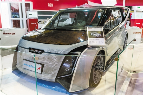 在上海首届中国国际进口博览会上亮相的汉能Solar A全太阳能汽车 图/视觉中国