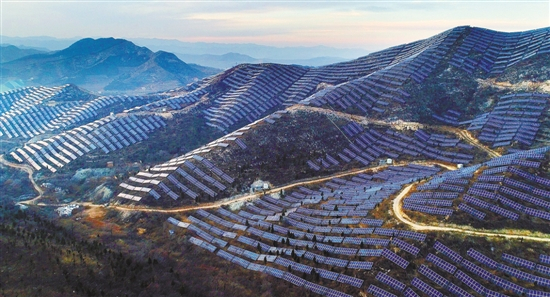 河北邯郸太行山脉中发展的光伏产业,在荒山上“种电”,把太行山变成了“太阳山”。这片太阳能板“铁甲”山坡正改变着附近村民的生活 图/视觉中国