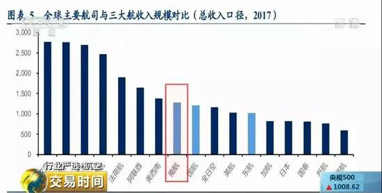 记者了解到,国内航空公司八成航线亏钱的主要原因是2011年到现在,票价下降了25%左右,而航线供给的增速每年却有12%的增长,供大于求,尤其是国际航线。目前我国前三大航空公司规模都已位列全球前十大,但是国内航空公司收入和国际相比差距较大,以2017年底汇率计算,美国三大航总收入普遍为2500-2800亿人民币,国内三大航中最大的南航为1275亿,仅为达美航空的47%。