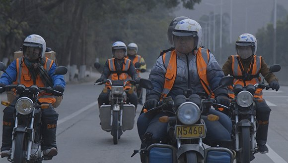 一个小时后,廖灿有和车队汇合。这个车队的成员来自同一个厂,决定今年一起骑车回家。