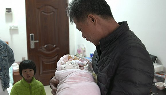 周胜光抱起刚出生的孙女。摄影:周雨潇