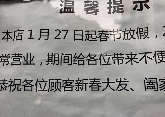 部分手机档口在一月中旬就贴出了春节休息的告示,而“忠哥”也正打算赶在30号关店,回潮州老家过年。