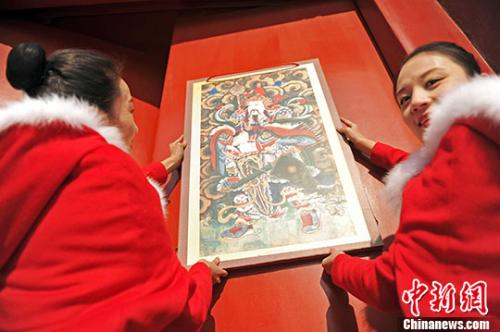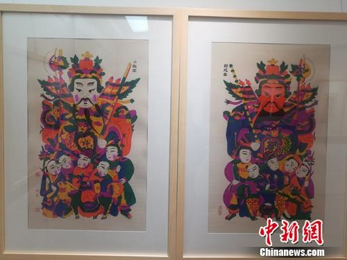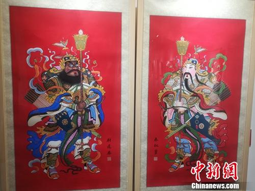 中新网客户端北京2月4日电(记者 上官云)在传统年节中,古人往往要郑重其事的在大门贴上门神画,以求驱邪避灾。瞧着门神威武的样子,仿佛心里也踏实了许多。