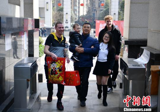 中新网乐山2月4日电 (记者 刘忠俊)2月4日,除夕,“Liam,quickly!”在妻子黄蔚茹的催促下,家住四川乐山城区的英国“洋女婿”Liam McCarthy提着精心准备的新年礼包、抱着刚满11个月的儿子Caleb,乐呵呵地踏上了回犍为老家过年的旅途,这是Liam McCarthy第一次过中国年。