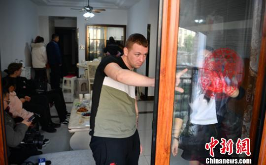 Liam McCarthy与妻子一起贴窗花。 刘忠俊 摄