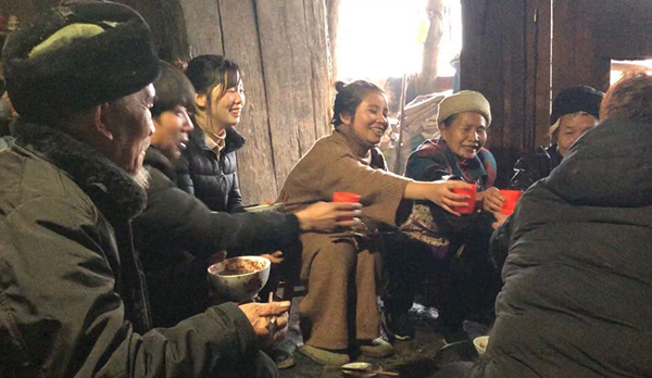 回家的高铁上,明仙告诉我,“我们那里的人特别热情,家家都要来叫你吃饭,能从早吃到晚。”到了村里,我才体会到明仙说的“热情”,路过谁家门口,都要被叫进去烤烤火、吃顿饭。有时这顿饭正吃着,下一家就已经约好了。