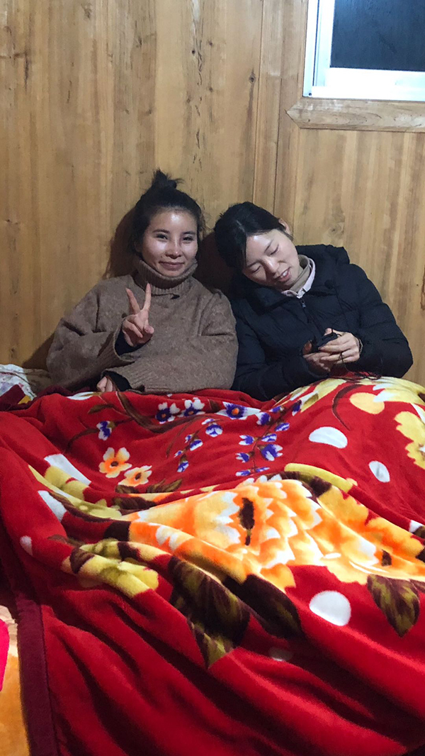 知道我们要来,明仙的三姐特意为我们铺好了床,换上新被褥。三姐家的房子是新建的二层小楼,木门木墙木地板,踏起来嘎吱作响。三姐说,木材要比水泥便宜得多。不变的是,厨房地上生着火,那是家里唯一的取暖。