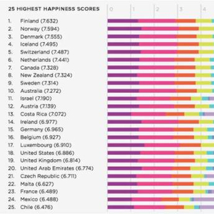 全球25个幸福指数最高的国家(图片来源:Visual Capitalist)