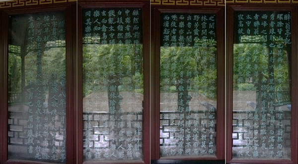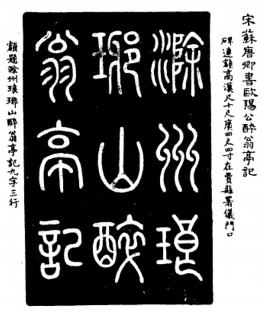 宣德年间(1426),南京太仆寺卿赵次进“复作醉翁亭,而刻所为记置亭中”,将苏轼书碑刻于两石四面,天启二年(1622)冯若愚另建屋亭将两石嵌于墙壁,这就是今天醉翁亭西侧宋宝斋的石碑,清咸丰及“文革”时期又遭严重损坏,现在只能辩识一半文字。1981年,当地又据拓本另行刻石,立于醉翁亭之西醒园“宋宝新斋”内,大字醒目,供人观瞻。