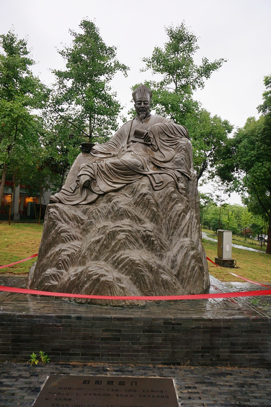 1045至1051年,欧阳修先后在滁州、扬州、颍州(今安徽阜阳)、应天府(今河南商丘)任官。2017年6月9至10日,我与老同学葡萄、押司在商丘访古,有憾于古宋州风韵凋零,临时决定连夜驱车赶至安徽滁州,寻访欧阳修的醉翁亭,为连续10天的寻宋之旅划上醉同其乐的句号。第二天大雨如注,琅琊山色仍然翠艳明丽,不减当年“林壑尤美,蔚然深秀”的风采。远离京城,欧阳修在滁州似乎恢复了游饮欢乐的生活模式,一篇不足500字的《醉翁亭记》,“乐”竟出现了10次。不过与“郎多才俊兼年少”的洛阳风流不同,这时年尚不及四十的欧阳修已是“苍颜白发,颓然乎其间者,太守醉也”。酒,在洛阳有红粉相劝、有奇士豪饮,在滁州便成了“醉同其乐”的销愁饮品。