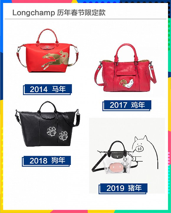 之后Longchamp改变了思路,在2018年和时尚博主包先生合作设计了2019猪年限定系列,春节限定款的团队中有了一位中国参与者。