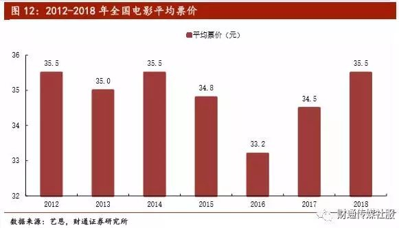 数据显示,含服务费的平均票价代表了居民为每张电影票消费金额,2018年全国平均票价(含服务费)提升1.0元至35.5元/张,延续2017年平均票价增长趋势。全国平均票价普遍提升也是2018年全年票房增长的重要原因。