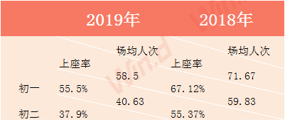 今年大年初二,上座率只有37.9%,场均人次40.63,较去年明显下滑。