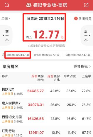 据猫眼实时数据,至北京时间2月7日00:00,大年初二(2月6日)的综合票房超过9.93亿元。而去年大年初二的票房数据是10.28亿元。