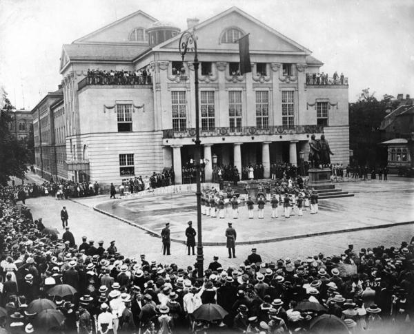 1919年2月6日,来自德国各地的议员们在魏玛出席大会,年轻的德意志共和国展现出与过去的德意志帝国的另一种风采。《柏林日报》对此报道:“不再是将军和贵族的光彩照人的卷发修饰,五彩的郁金香,以及别的夺目之处,图灵根的花匠们把剧院的内部做了丰富装饰。”