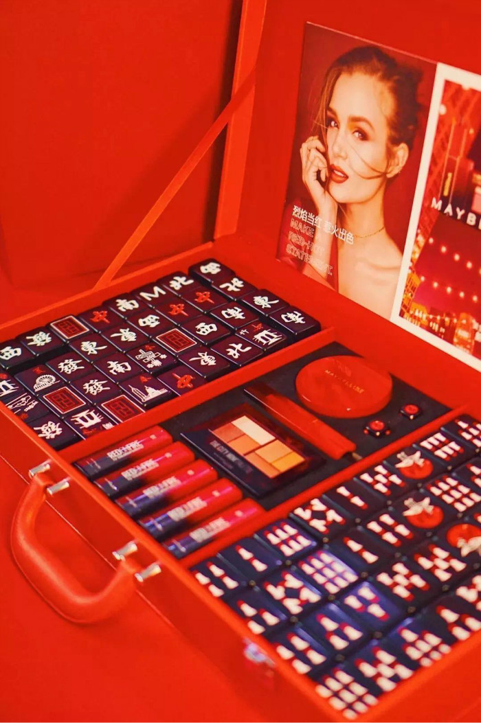 美宝莲今年推出了新年惹火限量系列麻将礼盒。礼盒中的麻将赠品主要配色为红白黑,与彩妆产品设计呼应。同时其口红还推出了鞭炮红、烟火红、春联红等色号,契合新年氛围。