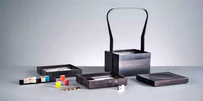 爱马仕的姊妹品牌“上下”也推出过一套麻将牌,由于是爱马仕旗下的中式品牌,因此从名称到设计这套麻将牌都是满满的中国风。这套麻将牌叫做“君子”,整体设计很像中国古代的提盒,总共有5层,分别摆放着四组麻将及牌尺和筹码。144枚麻将牌全部用的是檀香木和紫檀,售价约为68000元。