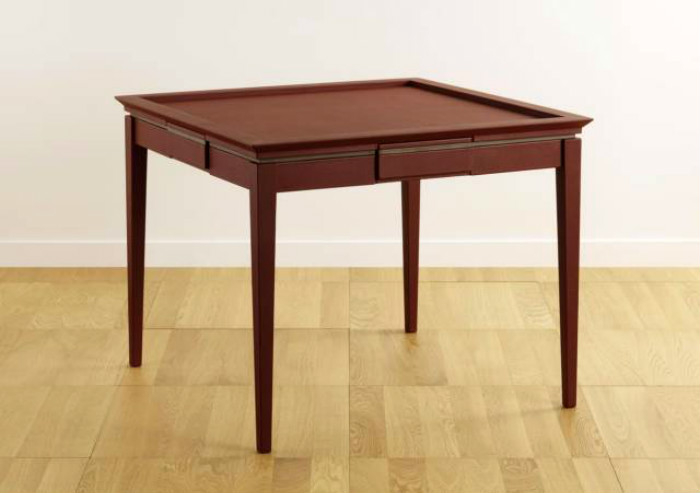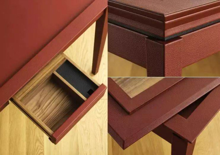 不止如此,爱马仕的家具系列里还有专门的麻将桌。麻将桌主要是由美洲的郁金香木制成,由Clemence小公牛皮覆盖外层,又轻又软还防虫。爱马仕的标志则被烫印在一个抽屉的皮革边角,售价约为80万元。