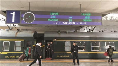 1月25日13时,临客3216次列车从上海站出发,满载着返乡的打工者驶向2167公里外的成都。从东经121度到104度,途经上海、江苏、安徽、河南、湖北、陕西、四川,全程2167公里,历时35小时26分钟。车上没有空调,没有卧铺,虽然无法与高铁动车里舒适的环境相比拟,但全程132元的低廉票价成为返乡务工人员和农民工朋友的首选回乡方式。
