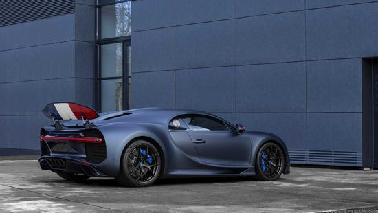 对于这种级别的跑车来说,即便是特别版仍不会对车身造型进行改动,大多只会在色彩和内饰上花心思。Chiron Sport 110 ans Bugatti特别版车型采用了源自于法国国旗蓝色的Le Bleu-Blanc-Rouge亚光涂装,除此之外,两侧后视镜和后扰流板底部都融入了法国国旗元素。