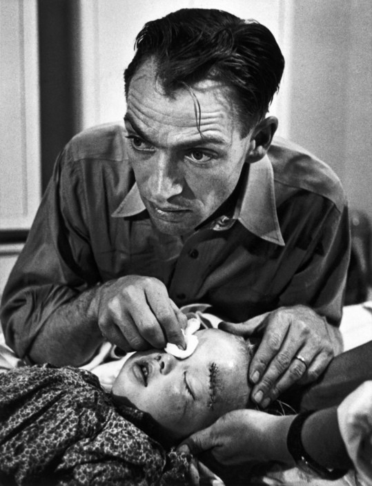 乡村医生Ceriani为被马踢伤的两岁半的儿童做紧急治疗 1948