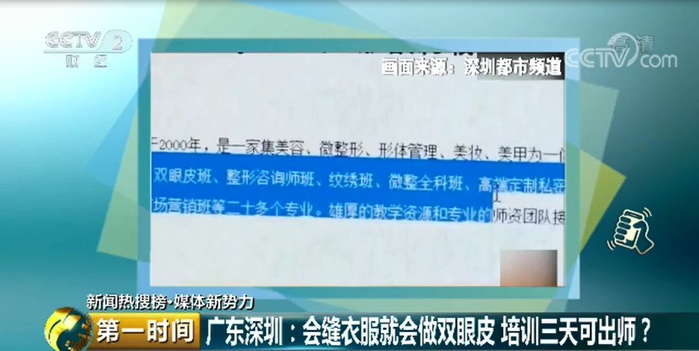 深圳某整形学校:会缝衣服就会做双眼皮 培训3天出师