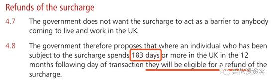只要这个海外买家,在房产交易日往后推的12个月(一年)内,到英国住满了183天或者以上,那他就可以申请全额退还“海外买家税”。