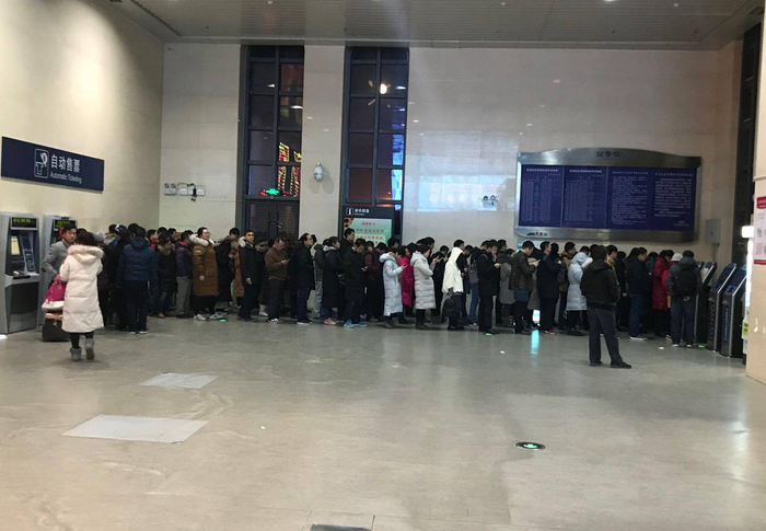 周一早上的车票是最难抢的,网络售票通常瞬间售罄。林文放弃了拼手速,他发现通过中铁银通卡取号会有部分预留票,但是周一如果不提前40分钟排队根本取不到,取票队伍能从候车室里排到室外去。