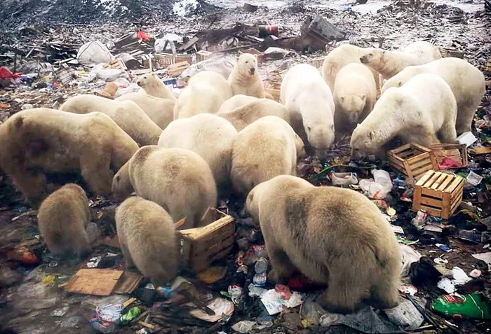 俄罗斯新地岛遭50余只北极熊“入侵”,居民不敢出门