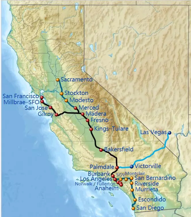 那时,加州州长施瓦辛格启动了加州雄心勃勃的高铁计划,加州高铁管理局(CAHSRA)应运而生。2008年的第一期计划草案显示,未来加州高铁将成为美国有史以来投入最高的公共工程项目,北接州府萨克拉门托、西临旧金山、南连圣地亚哥,向东更是通往隔壁内华达州的拉斯维加斯。