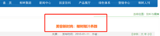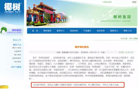 而椰树集团虽然没有明确表示椰树椰汁饮料有丰胸、美白的功效,却从多年前就开始在官网上援引与“椰汁保健功能”有关的文章。称椰汁椰肉不仅能使皮肤白皙,甚至有抗癌的作用。