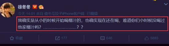 2月11日,徐冬冬也曾在微博回应称自己言论无误,但该微博随后被删除。