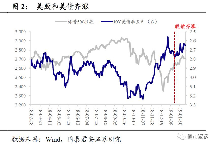 货币紧缩预期放缓,全球股债齐涨。随着美股经济增长见顶概率加大,油价暴跌通胀压力减轻,鲍威尔及其代表的美联储对经济、利率水平所处位置的看法发生了较大改变。美股迎来19年开门红,其产生外溢效应带动全球风险资产反弹。在流动性利好较为确定的情况下,虽然短期内经济并未得到提振,最终驱动了股市、债市双双走牛。复盘历史上的股债双牛。我国历史上共发生过14次可观测的股债双牛,总结历史上14次股债双牛规律,平均持续时间为79天,股市平均上涨幅度为14.68%,10Y国债平均下行幅度为29bp。结合股市与债市分别所处的阶段特征,一般呈现出以下三种形态:①震荡市中的共振:股债均处于长期震荡市,因某些原因股债发生共振;拐点型:债券牛市尾声或接近尾声(中后期),股市熊市反弹或牛市初期;超跌反弹型:股/债处于牛市,债/股超跌反弹(股债双熊同时超跌反弹也归于此类)。从股债双牛的三种形态看后续市场演绎。19年初以来的股债双牛基本上符合第二种或第三种类型的特征,即债市处于牛市下半场,而股市经过一年的下跌在中美摩擦预期缓和、全球紧缩节奏放缓、美股上涨外溢作用等多重利好下实现了超跌反弹。从过去股债双牛的后续进展来看,结合19年以来的阶段性特征,排除了经济滞涨形成的长期震荡市,股债双牛后续大概率会演化为两种情形:可能性一,债牛进入尾声而股市进入牛市,可能性二,债牛继续,但股市超跌反弹后重新回到下跌通道。