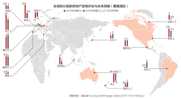 在这样的大背景下,各大机构对2019年房地产市场的预期均较为保守。比如,惠誉国际评级公司(Fitch Ratings)在1月中旬发布的2019全球房地产展望报告中认为,尽管大部分传统热门国家的楼市今年仍将保持上涨,但涨幅料普遍不如2018年。