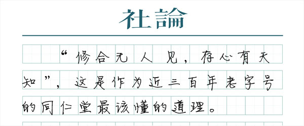 “修合无人见,存心有天知”,这是作为近三百年老字号的同仁堂最该懂的道理。