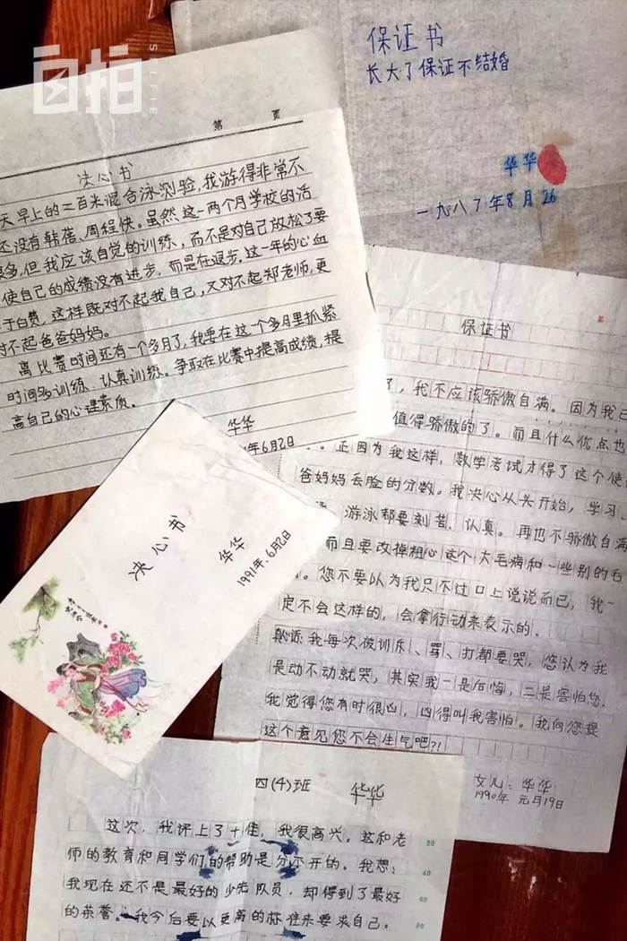 在家里时不时整理老东西,还能翻出女儿小时候的保证书、决心书,“长大了保证不结婚。华华。一九八七年8月26日。”