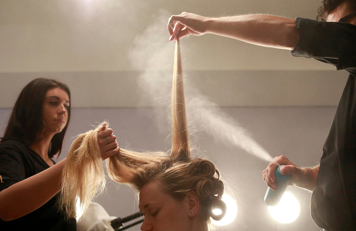 当地时间2019年2月12日,美国纽约,2019秋冬纽约时装周,后台化妆的模特。