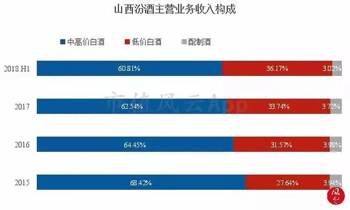 近年来,公司的中高价白酒占销售收入的比重有所下降,相应的低价白酒占比有一定抬升。