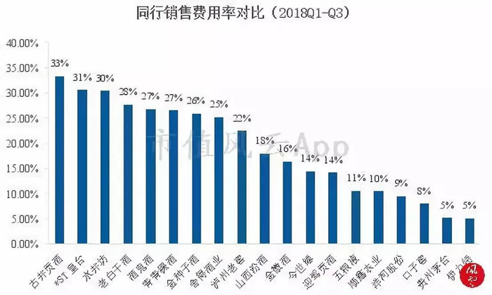 对比二线白酒,如水井坊、酒鬼酒、舍得酒业,公司的销售费用率都不算高。