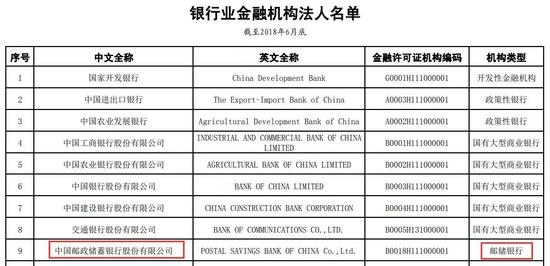 银保监会的最新文件显示,将邮储银行机构类型列为“国有大型商业银行”,与工农中建交一致。