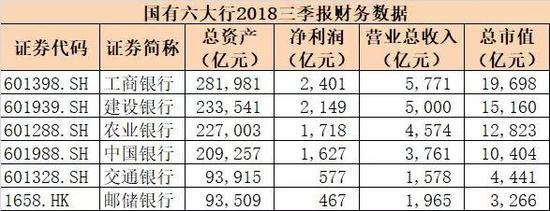 据2018三季报,邮储银行在国有六大行的财务指标排名如下,截至2018年9月末,邮储银行资产规模已达9.35万亿元,已经接近第五大国有银行交通银行同期的9.39万亿元。