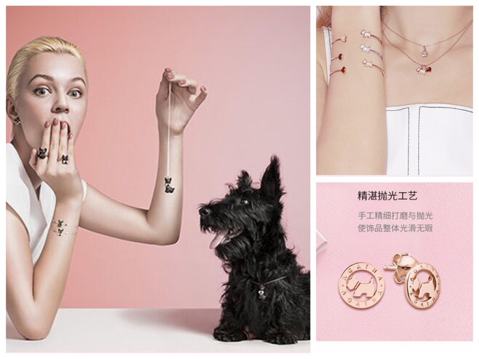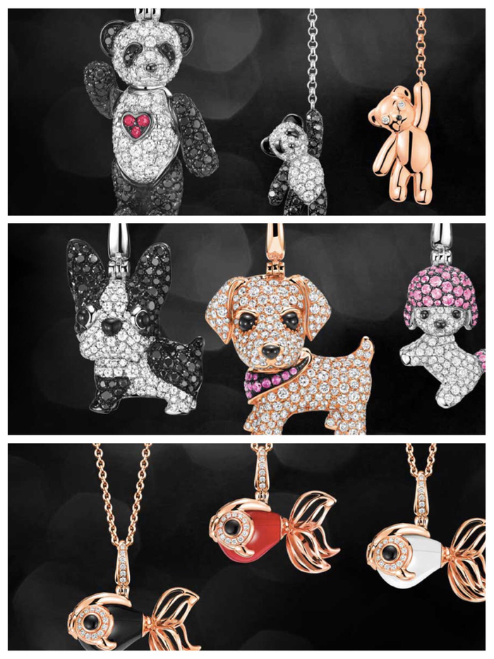 珠宝品牌Qeelin除了著名的葫芦造型珠宝,还有以熊猫“滚滚”为主角的Bo Bo系列,主打“汪星人”的Wang Wang系列,以及金鱼Qin Qin系列。