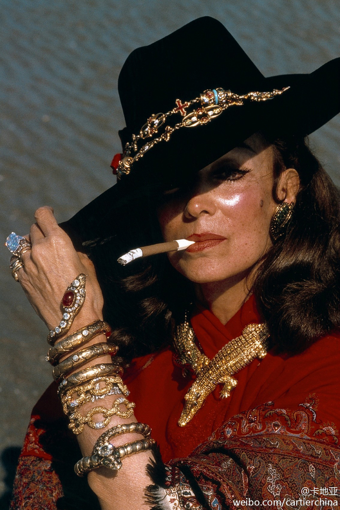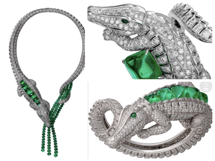 除了猎豹,鳄鱼也是卡地亚的重要动物图腾。1975年,卡地亚为墨西哥女演员玛莉亚•菲利克斯创造出一款鳄鱼造型项链。去年11月,卡地亚再度致敬经典,推出了全新的鳄鱼造型高级珠宝。玛莉亚•菲利克斯佩戴的项链是两只鳄鱼咬在一起,而这一次小鳄鱼改了爱好,跟自己的尾巴较劲。