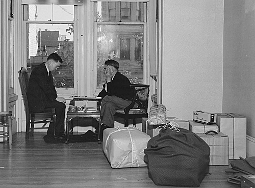 准备搬迁至拘留营的日裔。(美国国家档案局)