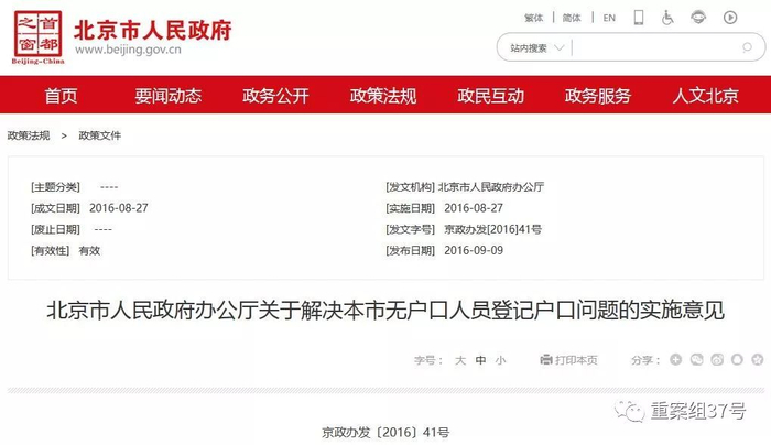 ▲北京市政府办公厅于2016年8月发布意见,明确非婚生子女可落户。微博截图