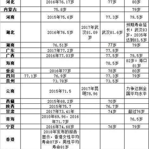 此外,山东、福建、广东、广西等地人均预期寿命已超过77岁。其中,山东在2016年人均预期寿命已达78.5岁,并定下了2020年达79岁的目标;而广东和广西则相对更保守,2020年目标为77.8岁和77.5岁,福建2020年目标则为78.29岁。