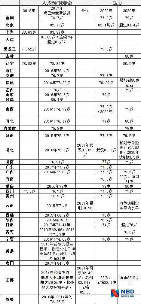 那么,我国的人均预期寿命是个什么状况?哪些地区的居民相对更为长寿?每日经济新闻记者梳理了近年来全国34个省级行政区的相关数据后发现,